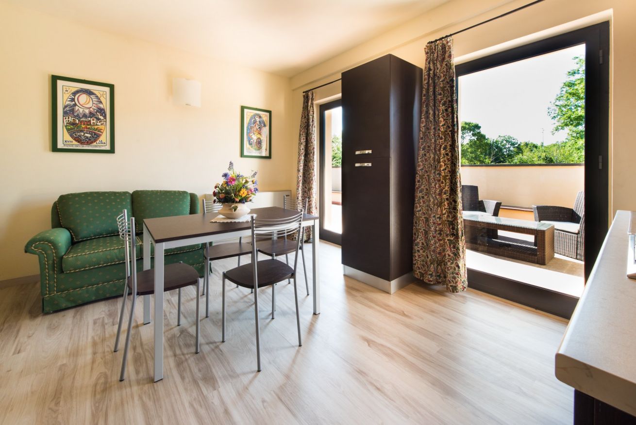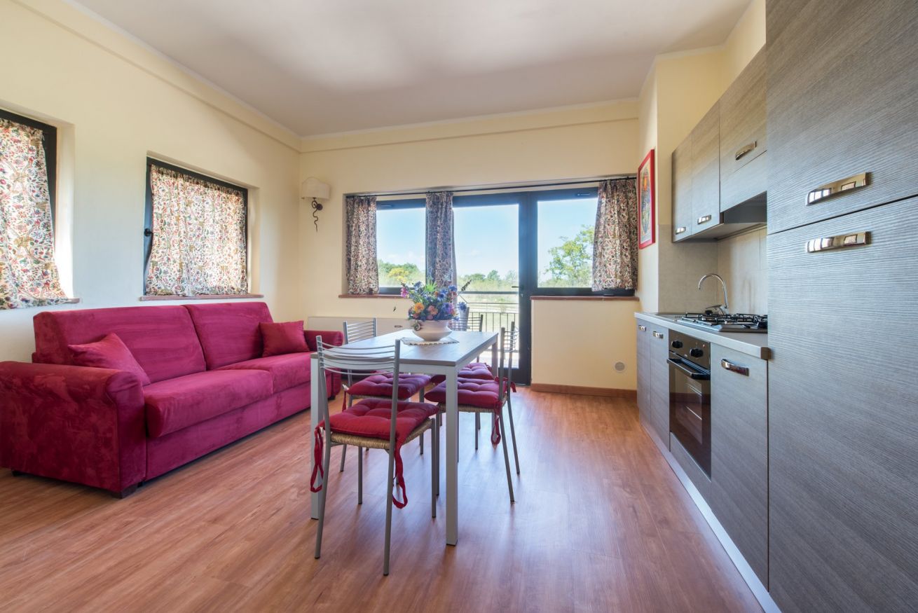 Appartamento nel complesso Residenze Pianetti che si trova a 700 metri dall'agriturismo Le Fabbre. Ogni appartamento è composto da 3 ambienti: camera matrimoniale, soggiorno con divano letto e bagno. Inoltre è presente un balcone privato.